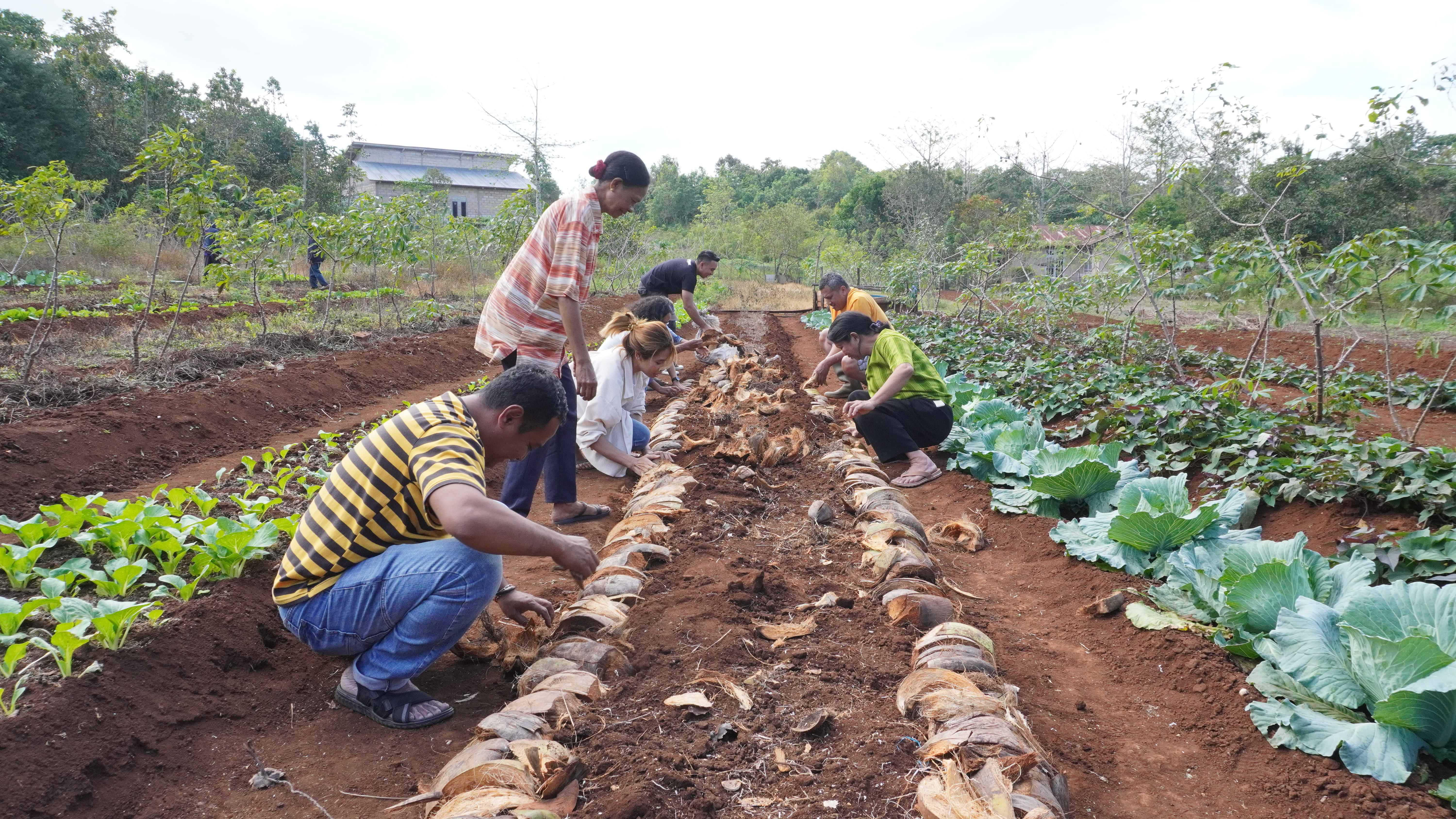 Currently, the farmers are applying what they have learned by enriching the soil with dried leaves as natural fertilizer, gradually reducing chemical fertilizer use that damages the land. They are also beginning to produce their own organic fertilizers, learning the right compositions. Some members, like Bapa Nitbani and Bapa Selan, are experimenting with turning agricultural waste — dried leaves, corn stalks, and pig manure — into soil-enriching materials. The results are visible: the mustard greens are growing fuller and healthier. They have also started applying natural pest control methods, such as watering plants with clean water in the evenings after rain.